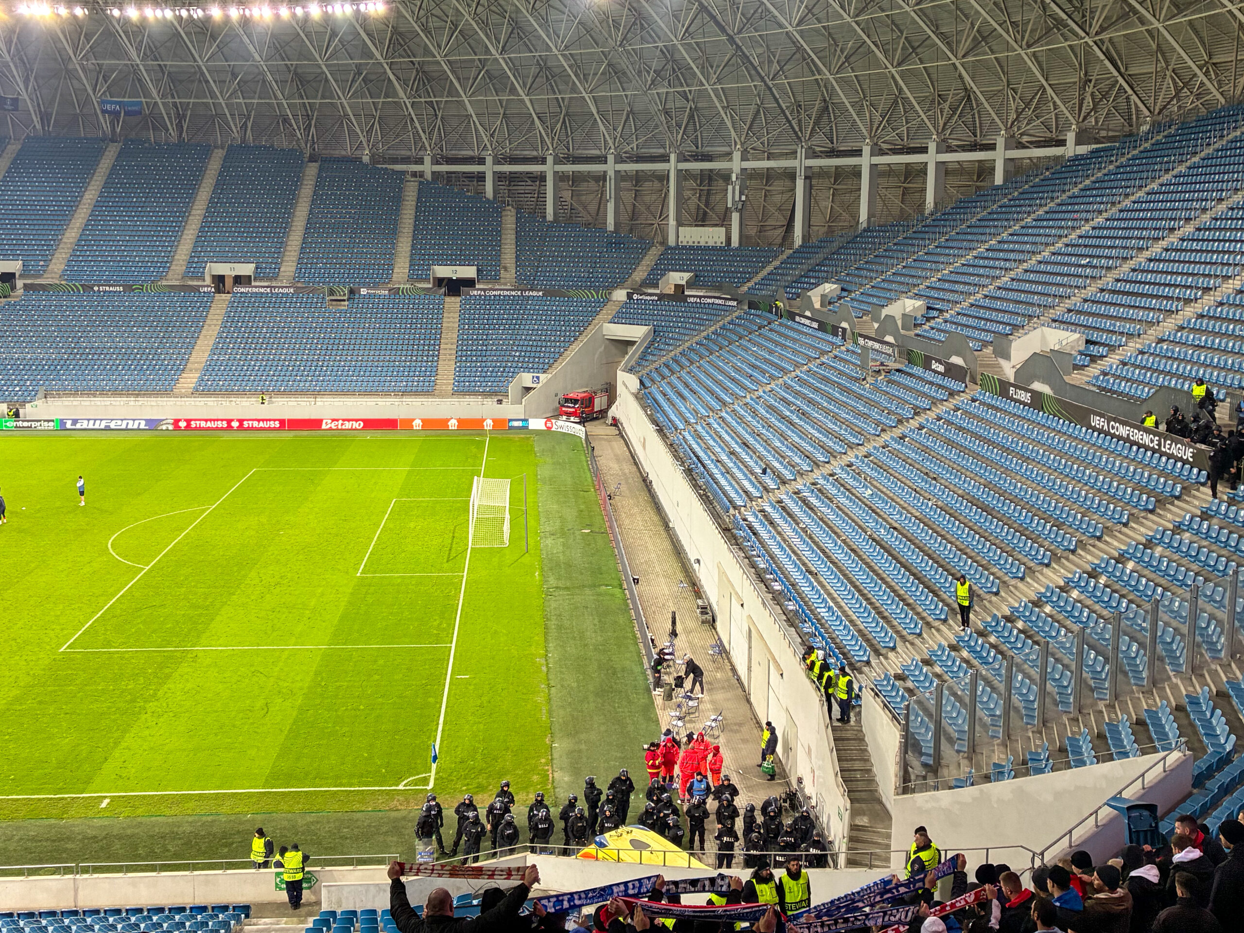 Das Schöne an internationalen Auswärtsfahrten sind oft die Begegnungen vor dem Spiel. Und natürlich ergebnisunabhängig nach dem Spiel (diesmal vorallem an der Hotelbar des Teamhotels). Zu den unangenehmen Erscheinungen hingegen zählen bizarre Elfmeter, mit denen es in Craiova startete und dieser das Spiel entschied. Auch ellenlange Videobeweise sind einfach nur noch gestört. Warum man 5 Minuten braucht, um etwas zu entdecken? Das Abseits von Kacper sollte sich mit einem Blick entdecken lassen. Oder das „Foul“, das zum Elfer führte. Anonsten ist das einfach nur noch abstoßend – genauso wie komplett überflüssige Blocksperren.